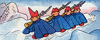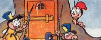 4 gennaio 1942: esce il fumetto n.1 dell'anno XX del periodo fascista. I giocattoli si ritrovano in pagina uno del fumetto per partecipare alla guerra pure loro. I soldatini di stagno si sacrificheranno in nome di "Ferro e stagno alla nazione".