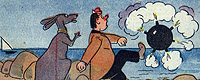 Le città sono bombardate ed ecco che le storie del cittadino Sor Pampurio sono ambientate in campagna.