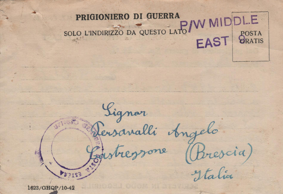 Lettera scritta il 9.12.1942 nel campo di prigionia e spedita in Italia a Cava de’ Tirreni, provincia di Salerno