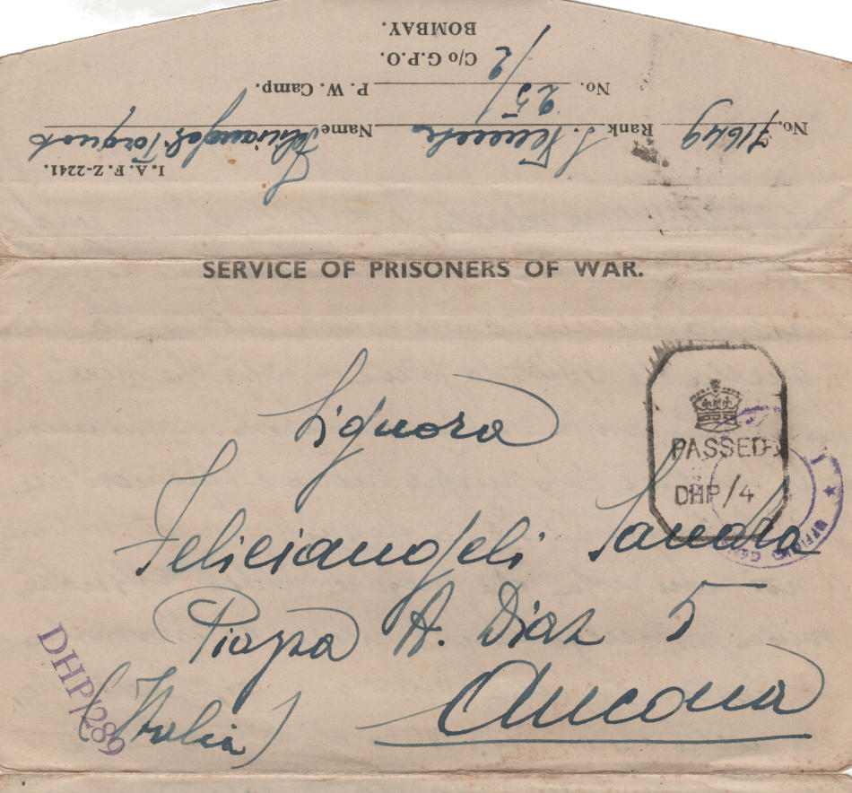 Lettera scritta 12 Maggio 1943 dal campo di prigionia e spedita ad Ancona in Italia