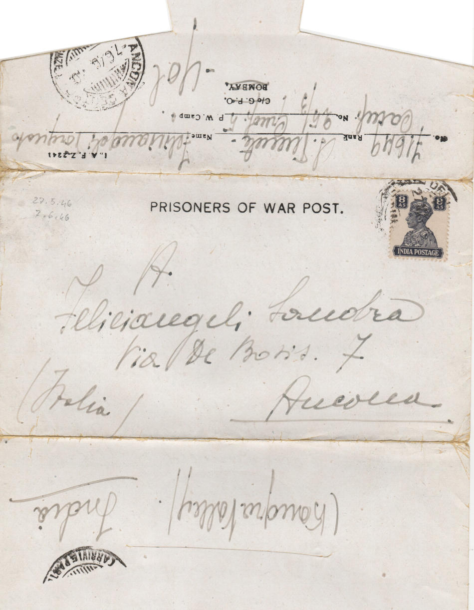 Lettera scritta il 20 Maggio 1946 dal campo di prigionia e spedita ad Ancona in Italia