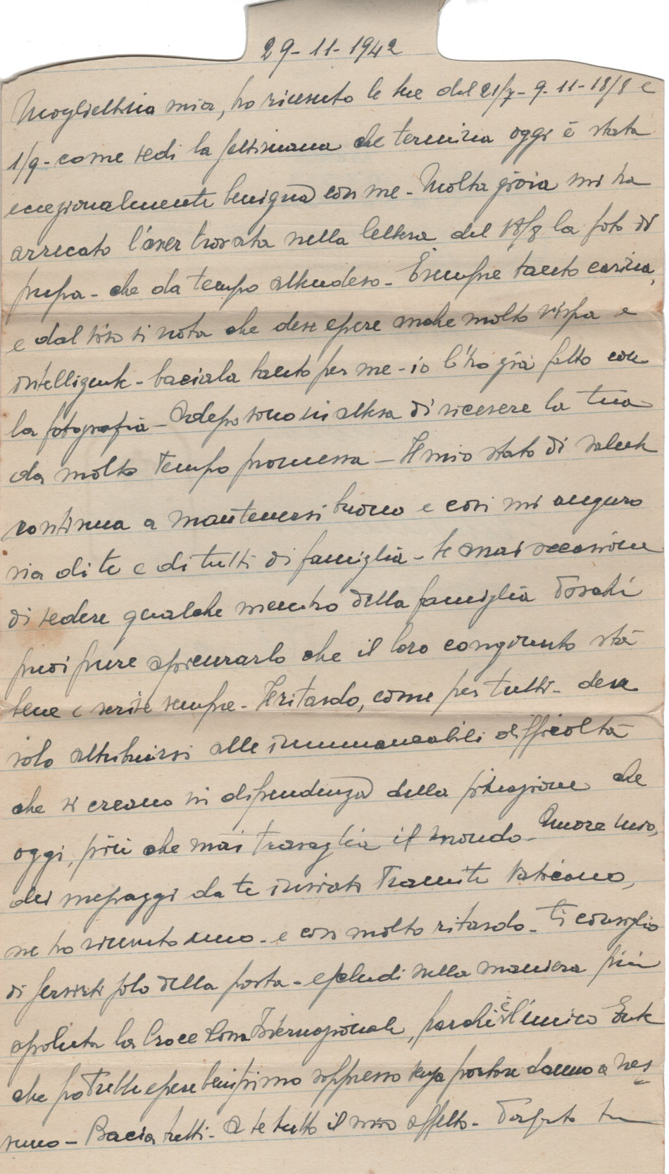Lettera scritta il 29 Novembre 1942 dal campo di prigionia e spedita ad Ancona in Italia