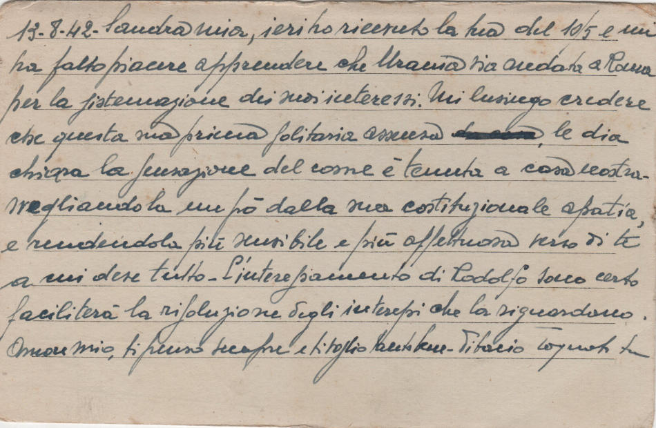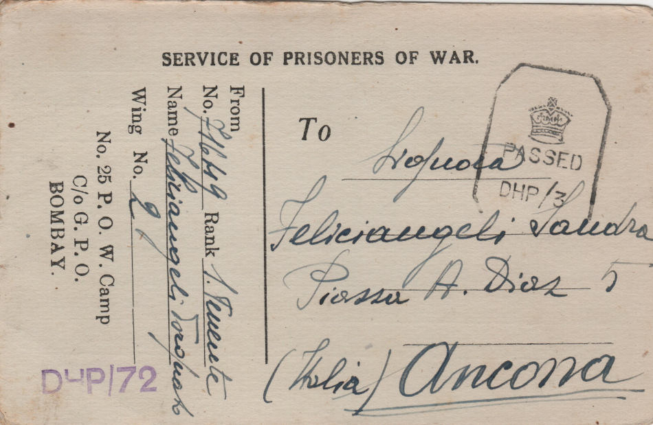 Cartolina scritta il 13 Agosto 1942 dal campo di prigionia e spedita ad Ancona in Italia