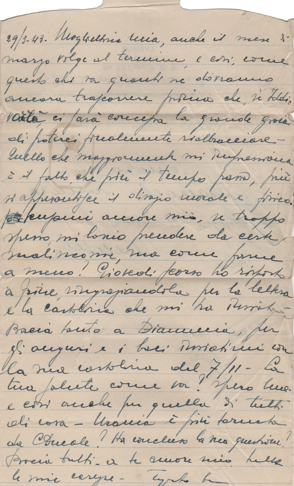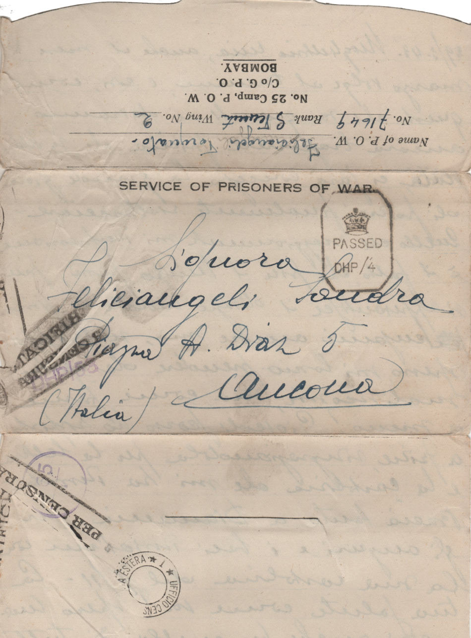 Lettera scritta il 29 Marzo 1943 dal campo di prigionia e spedita ad Ancona in Italia