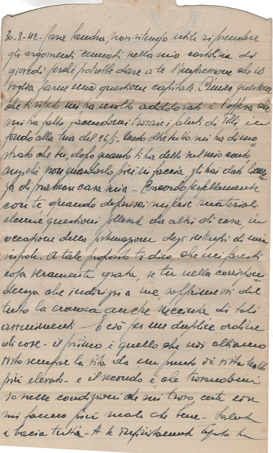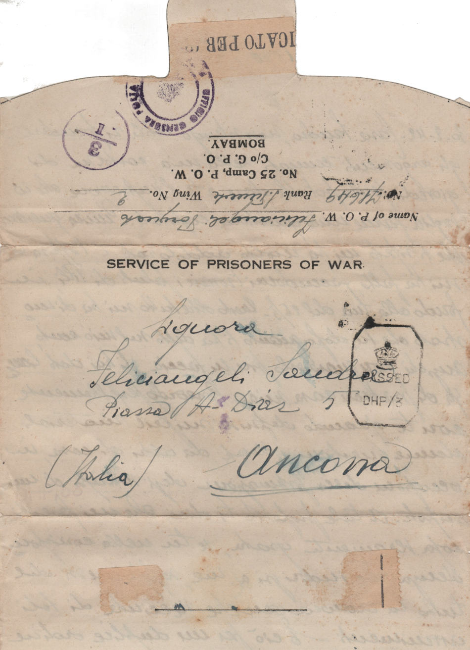 Lettera scritta il 30 Agosto 1942 dal campo di prigionia e spedita ad Ancona in Italia