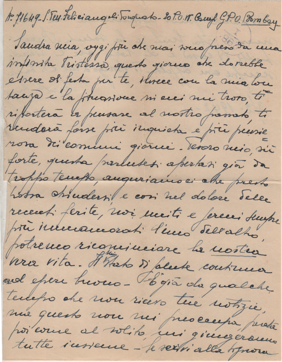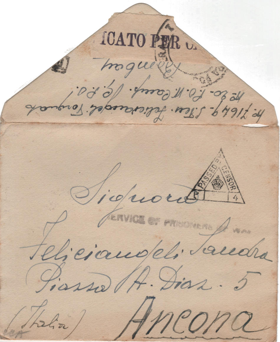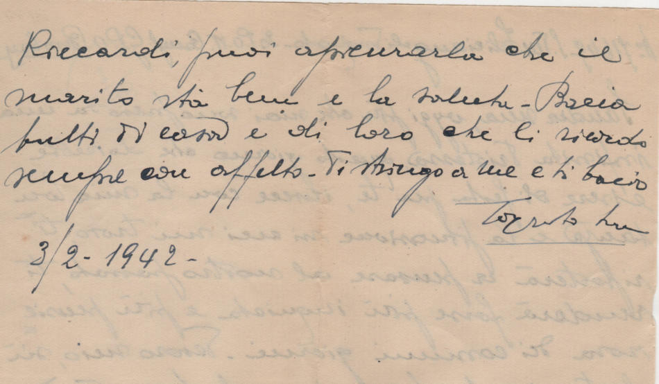 Lettera scritta il 3 Febbraio 1942 dal campo di prigionia e spedita ad Ancona in Italia