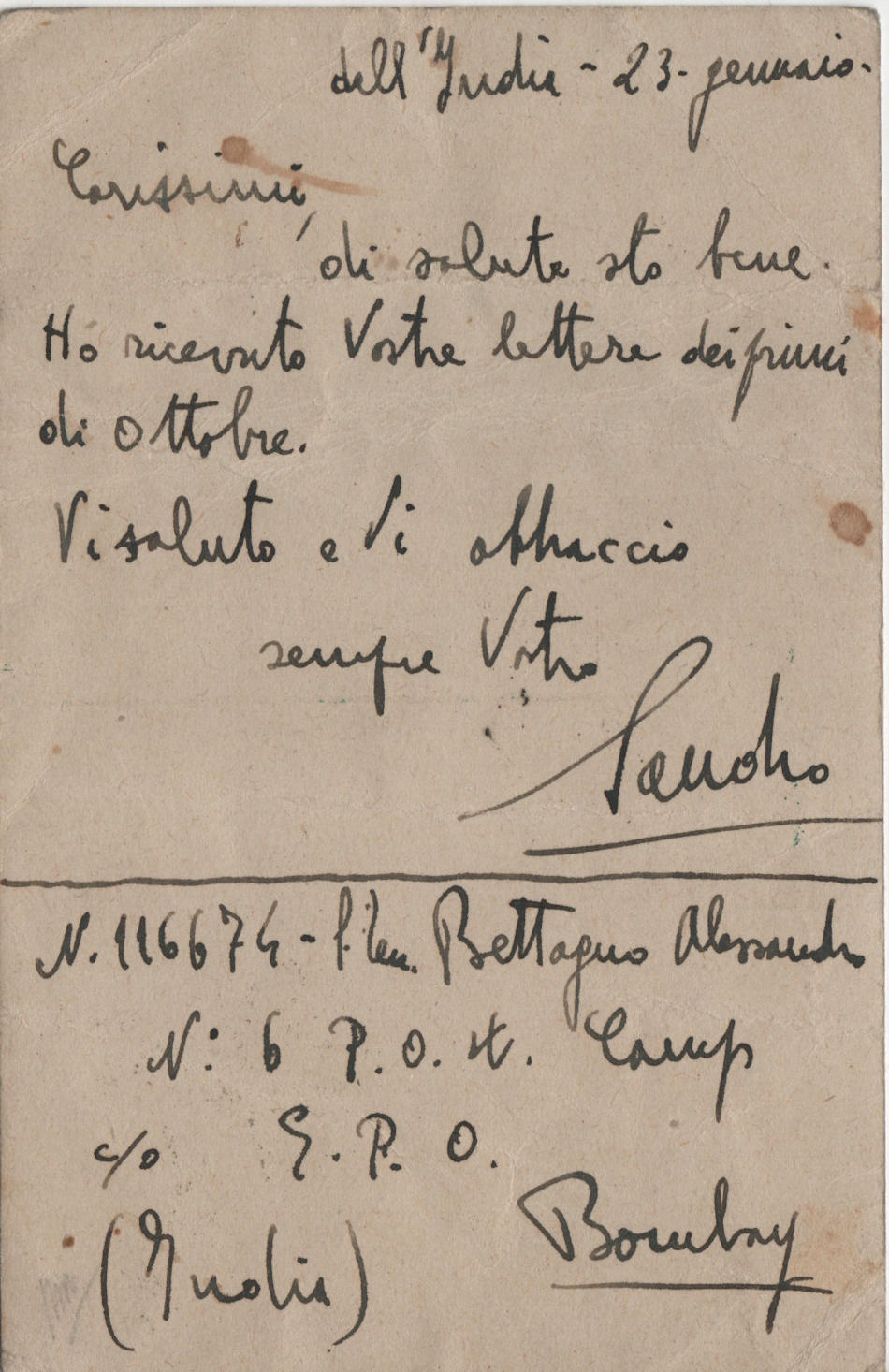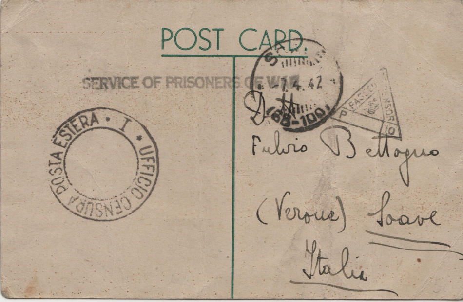 Cartolina scritta il 23.1.1942 nel campo di prigionia e spedita a Soave (provincia di Verona) in Italia