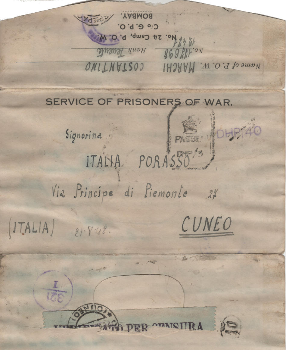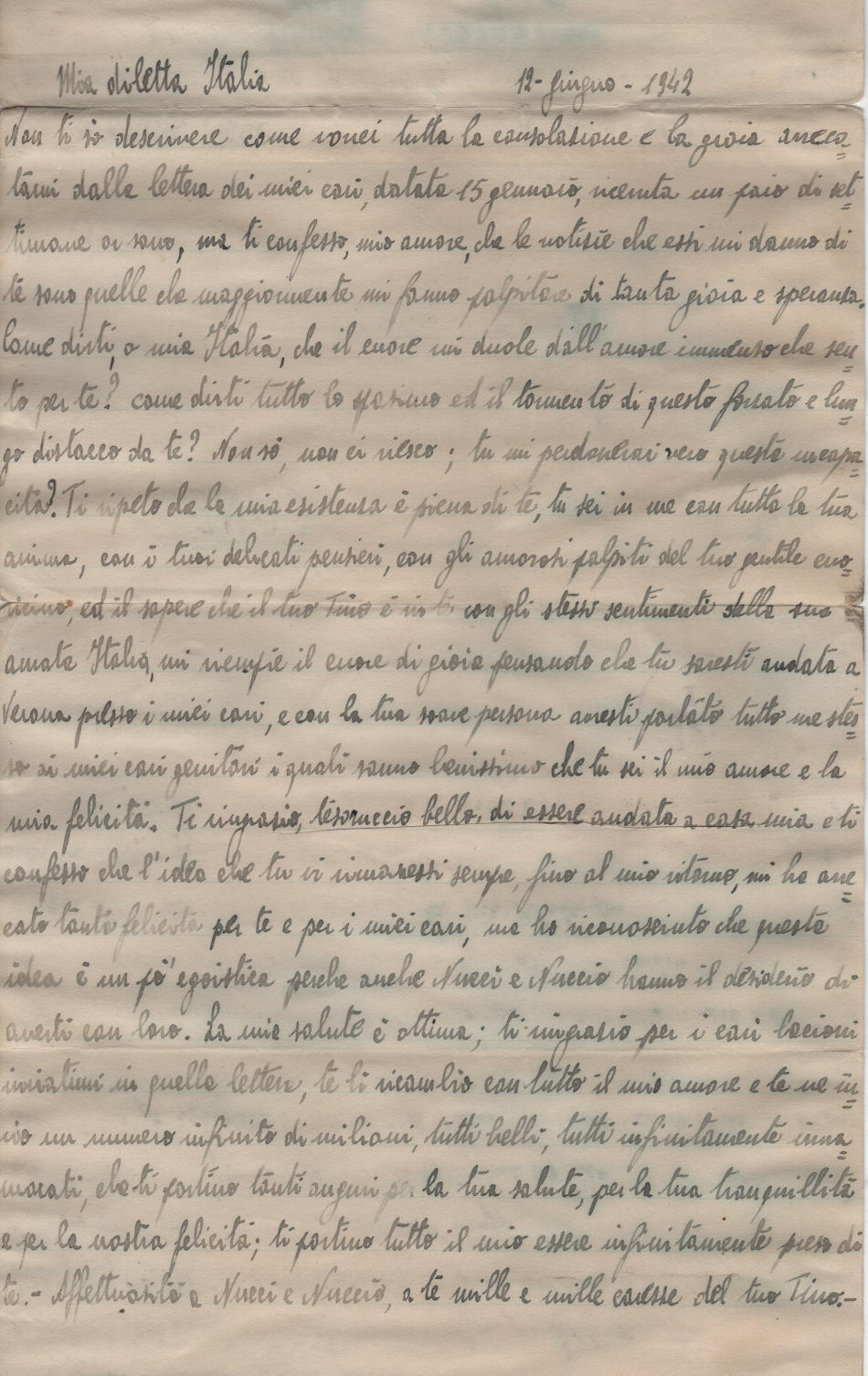 Lettera scritta il 12.6.1942 nel campo di prigionia e spedita a Cuneo in Italia