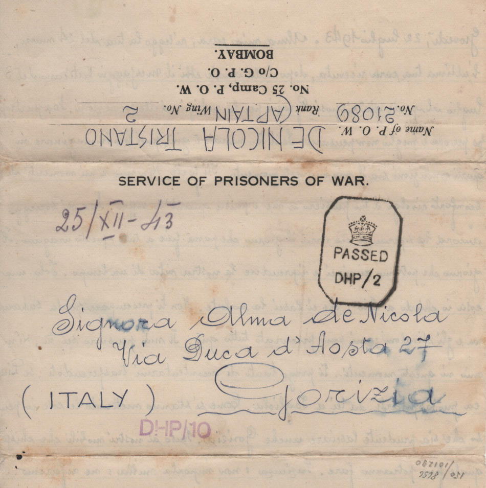 Lettera scritta il 22.7.1943 nel campo di prigionia e spedita a Gorizia in Italia