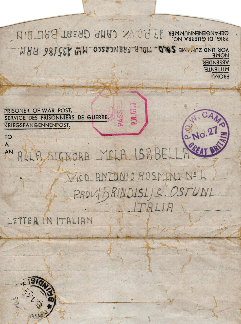 Lettera scritta il 12.11.1944 nel campo di prigionia e spedita a Ostuni (Brindisi) in Italia