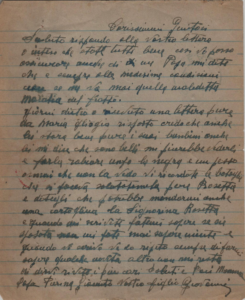 Lettera scritta il 6.5.1943 nel campo di prigionia e spedita a Roma in Italia