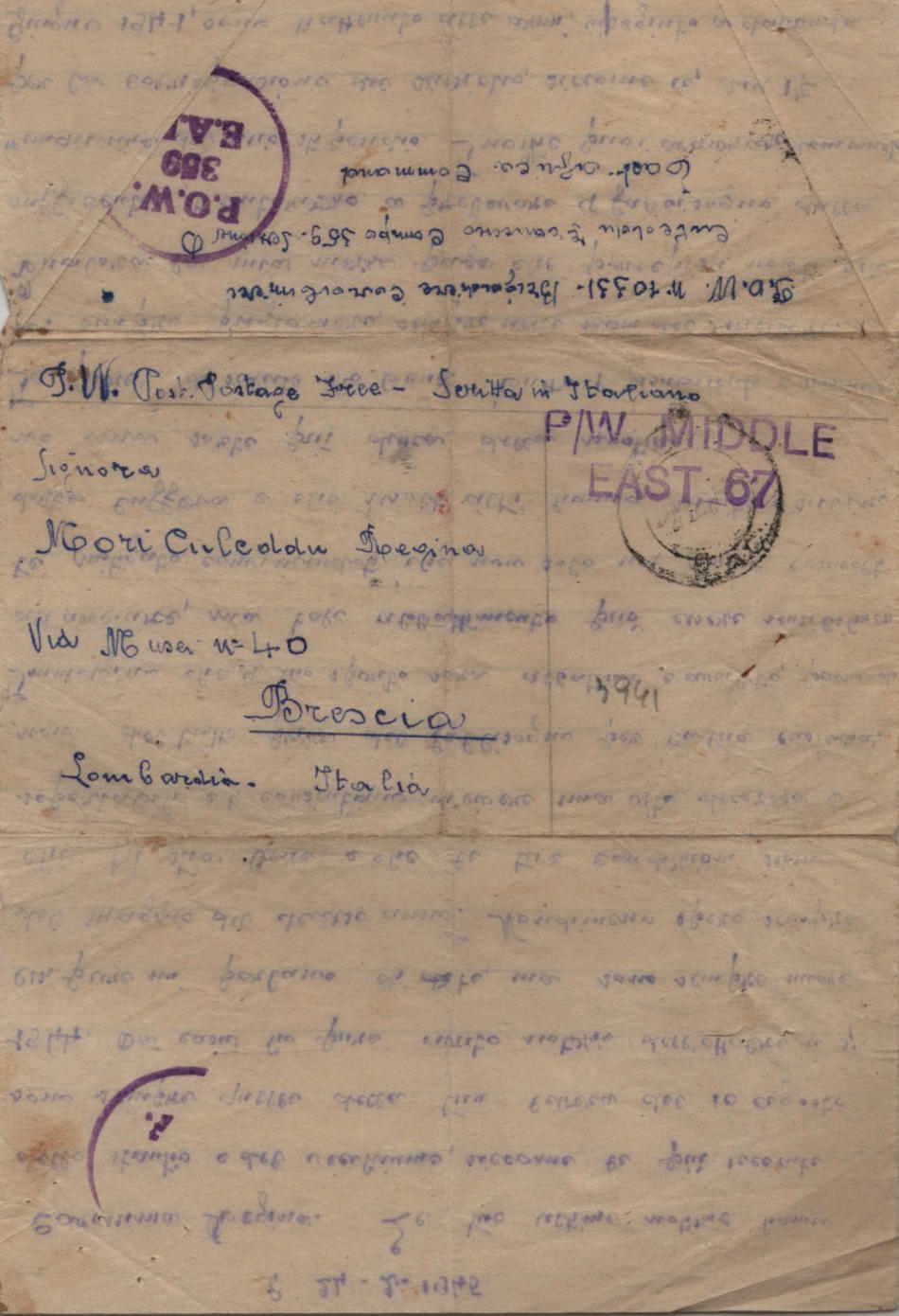 Lettera scritta il 24.2.1945 nel campo di prigionia e spedita a Brescia in Italia