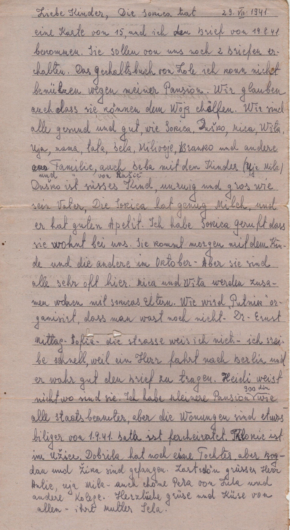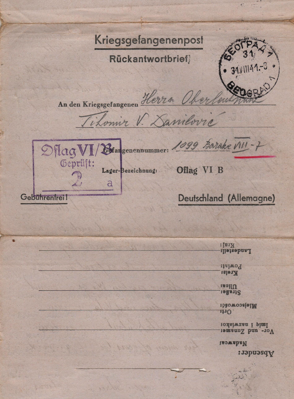 Lettera scritta il 29.07.1941 a Belgrado (Serbia) e spedita II 41) al campo di prigionia