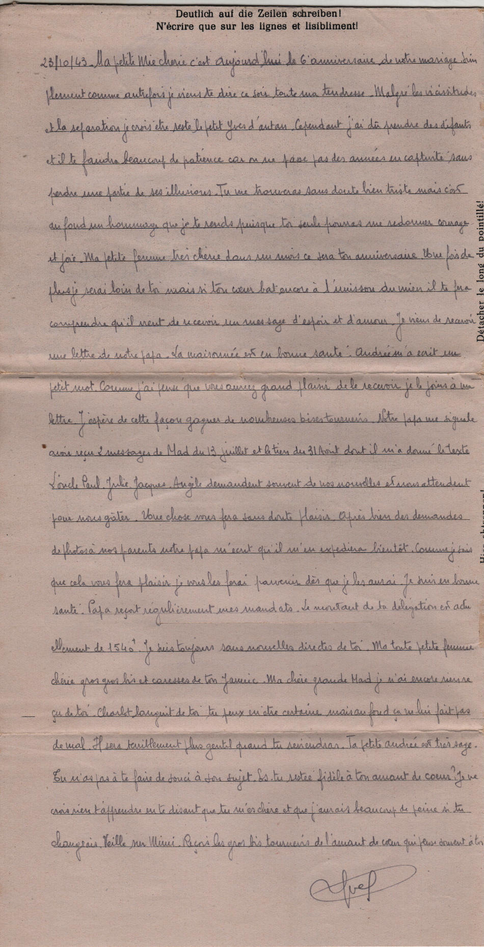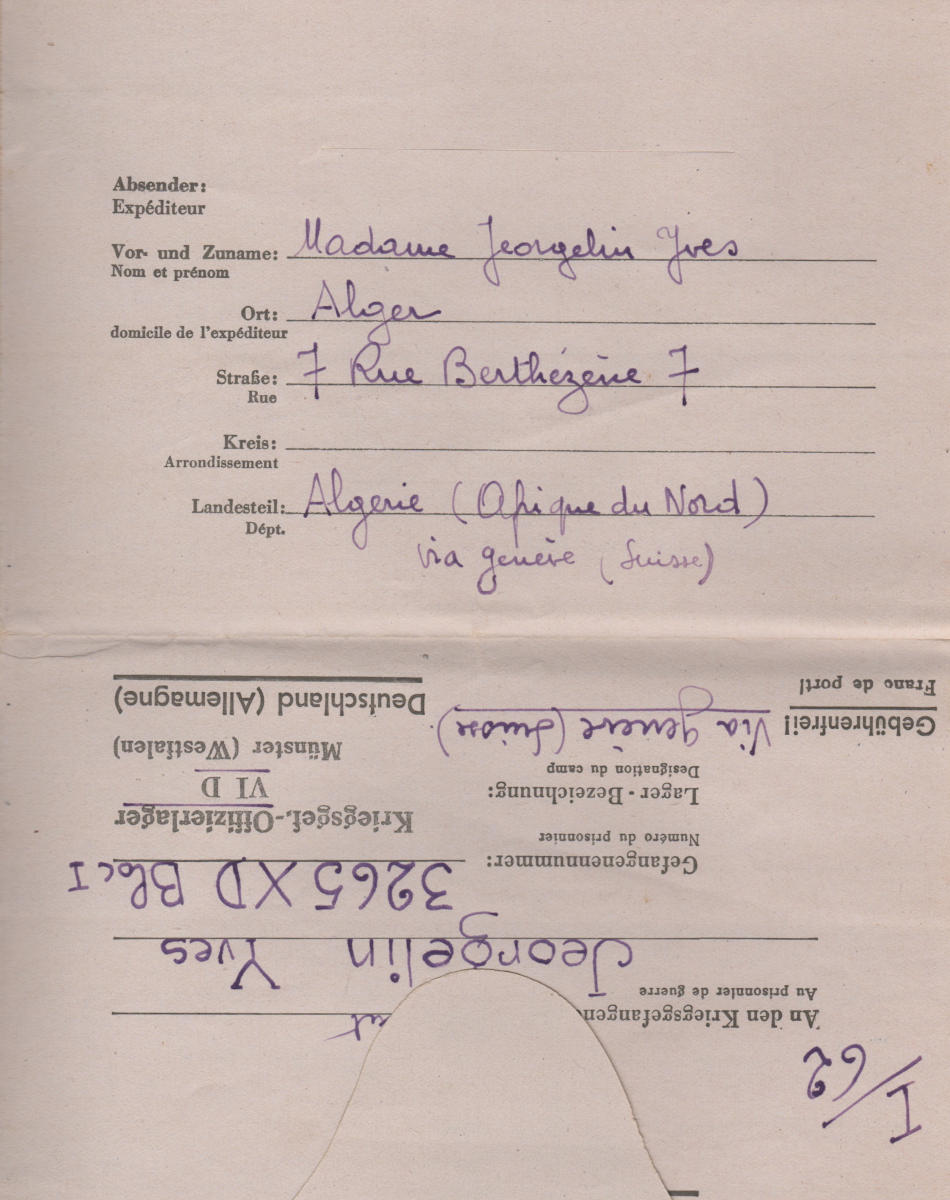 Lettera scritta il 23.10.1943 nel campo di prigionia e spedita a Algeri (Algeria)