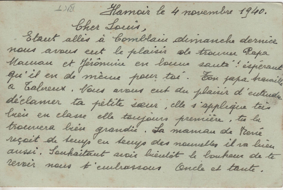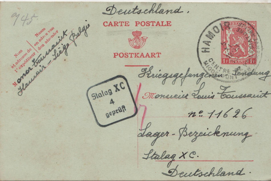 Cartolina scritta il 4.11.1940 da Hamoir (Vallonia) in Belgio e spedita al campo di prigionia