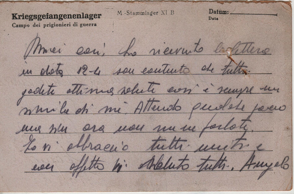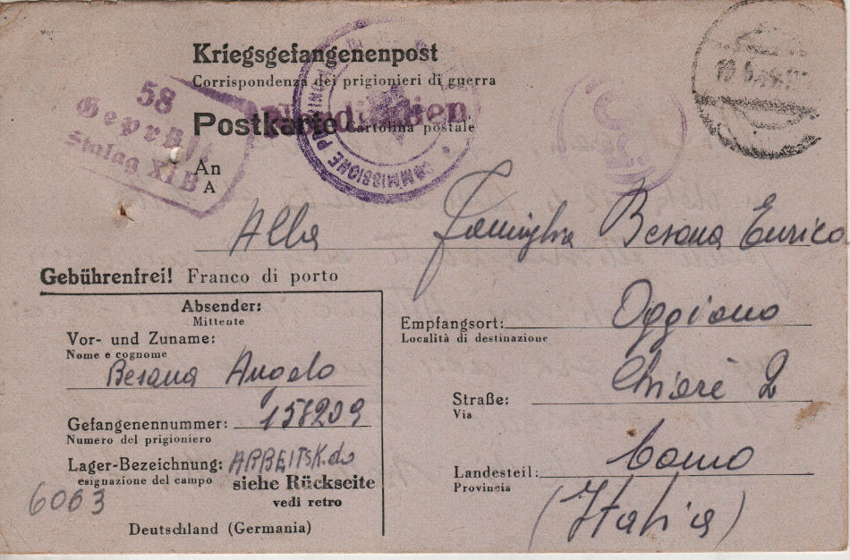 Cartolina scritta nel campo di prigionia e spedita a Oggiono (provincia di Como) in Italia