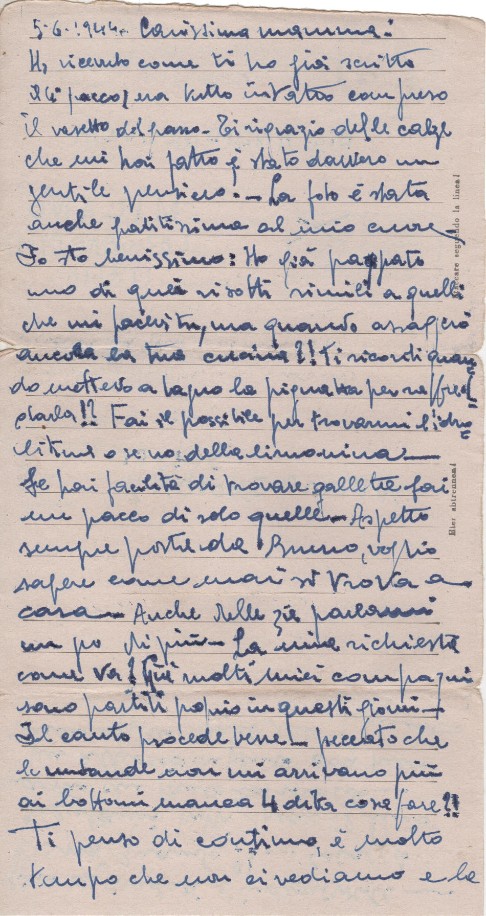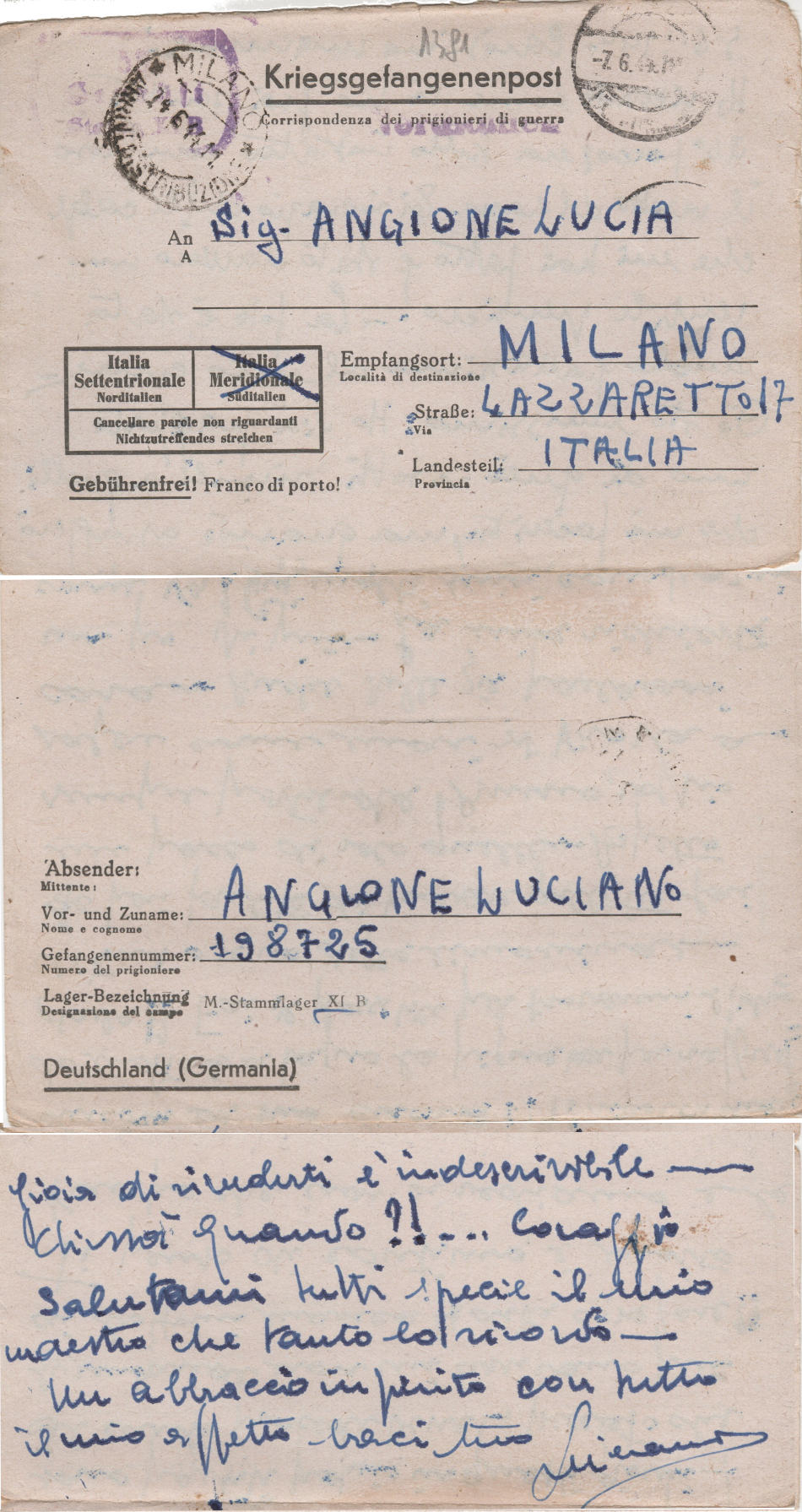 Lettera scritta il 5.6.1944 nel campo di prigionia e spedita a Milano in Italia