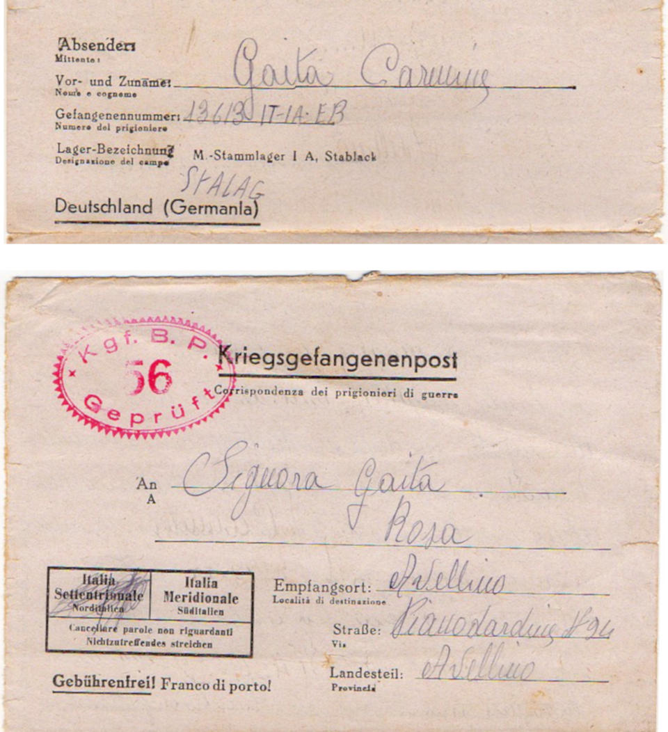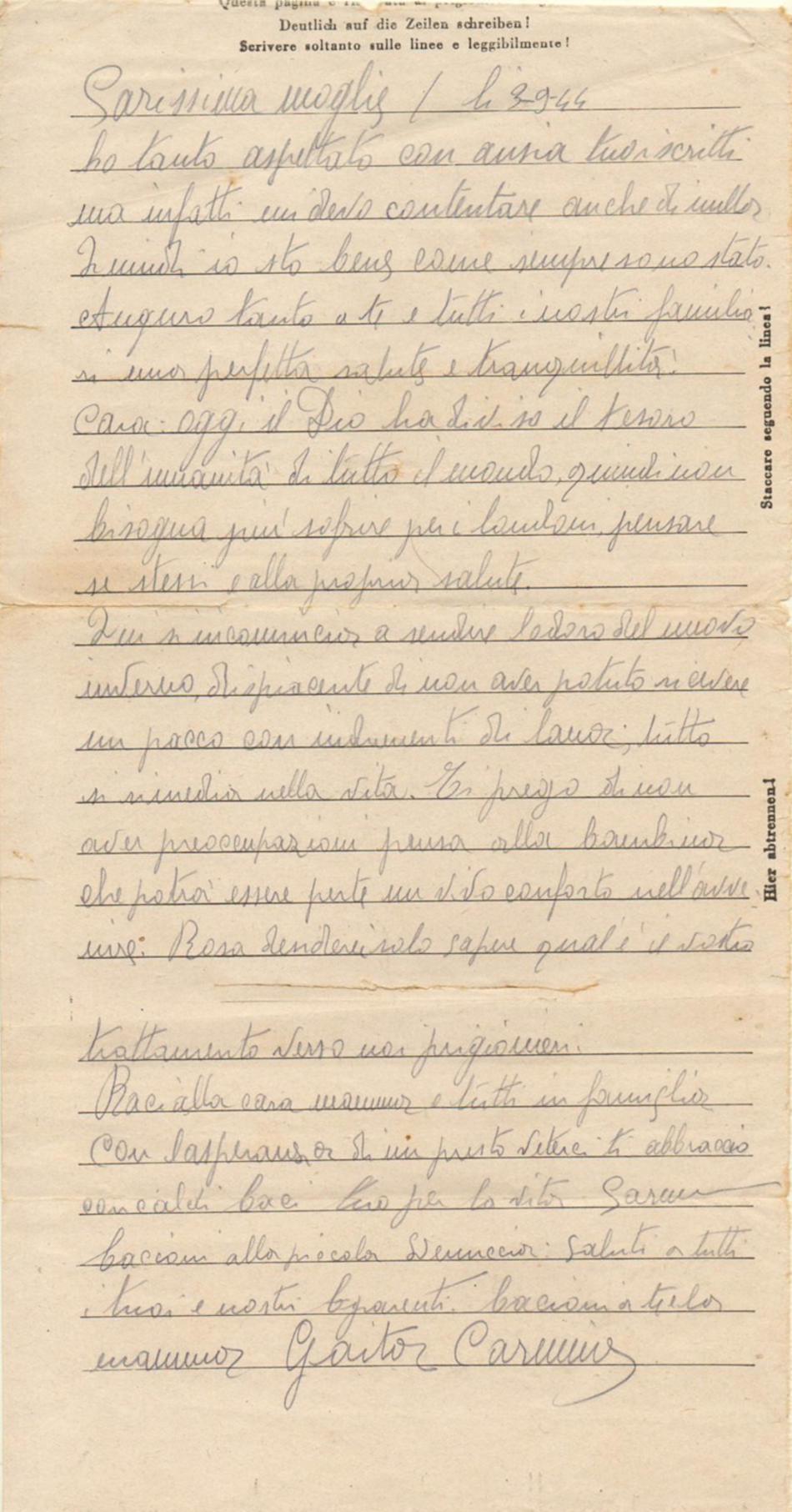 Lettera scritta il 3.9.1944 nel campo di prigionia e spedita ad Avellino (Italia)