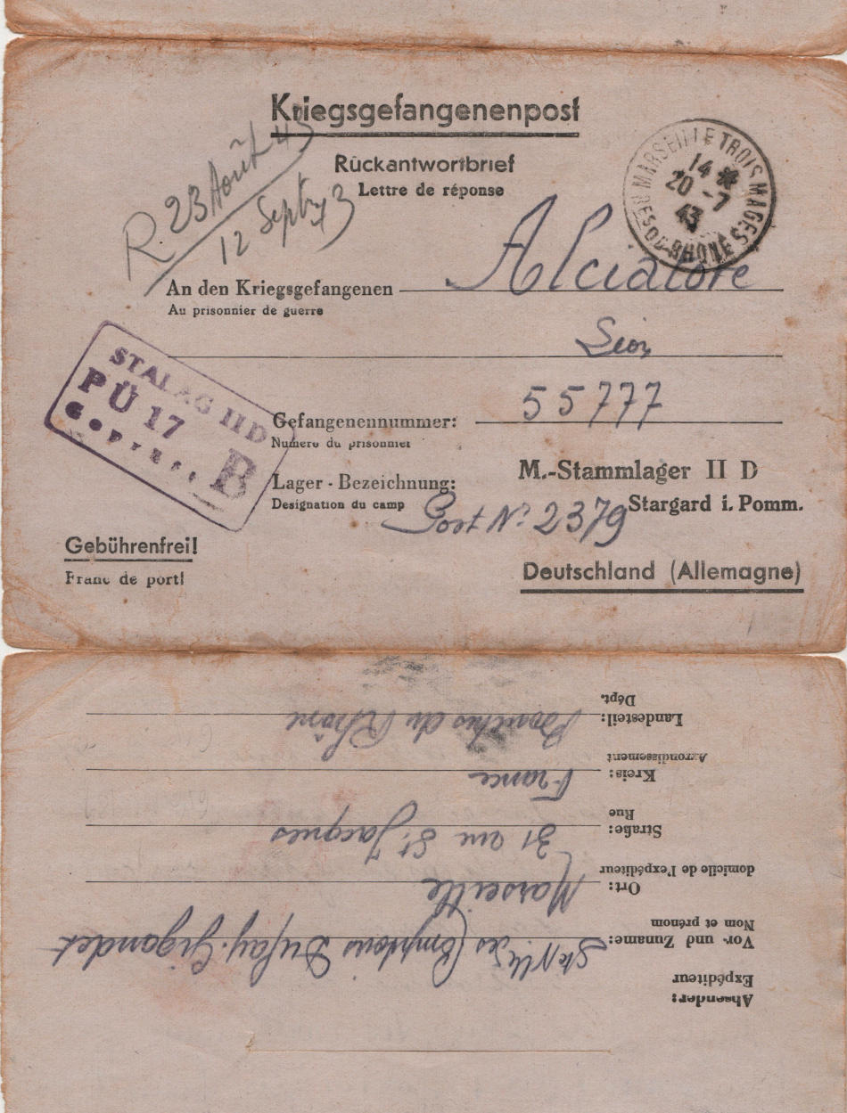 Lettera scritta il 20.7.1943 da Marsiglia (Francia) con destinazione il campo di prigionia