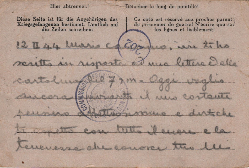 Cartolina scritta il 12.2.1944 a Roma in Italia e spedita nel campo di prigionia