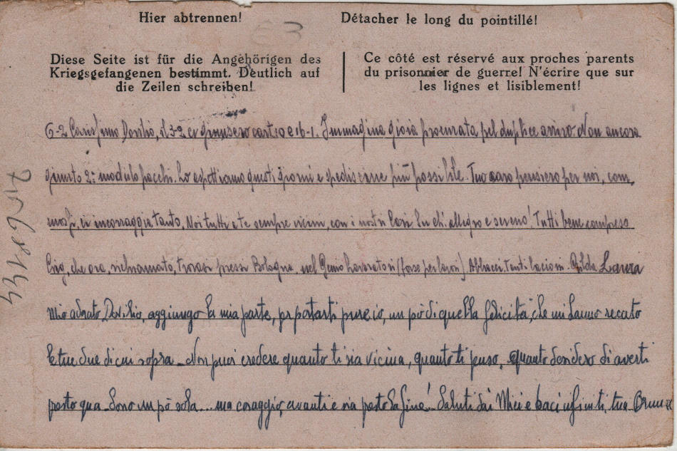 Cartolina scritta il 6.2.1944 a Imola, provincia di Bologna (Italia) e spedita al campo di prigionia