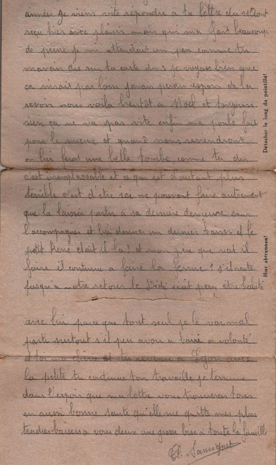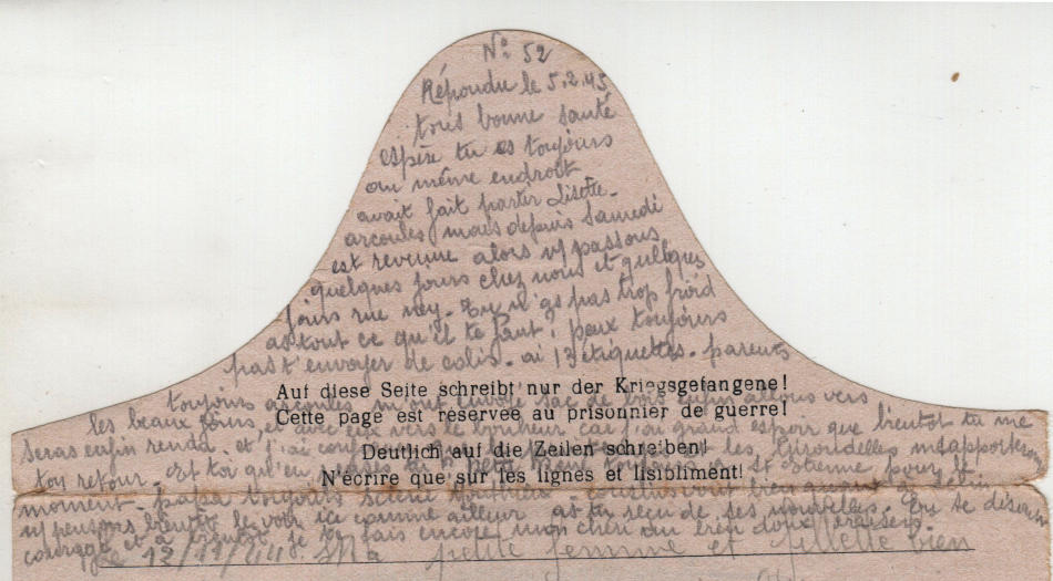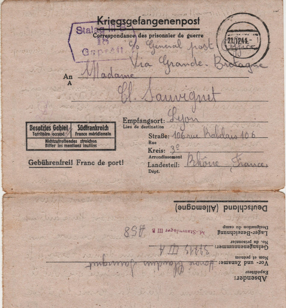 Lettera scritta l' 12.11.44 nel campo di prigionia e spedita a Lione in Francia