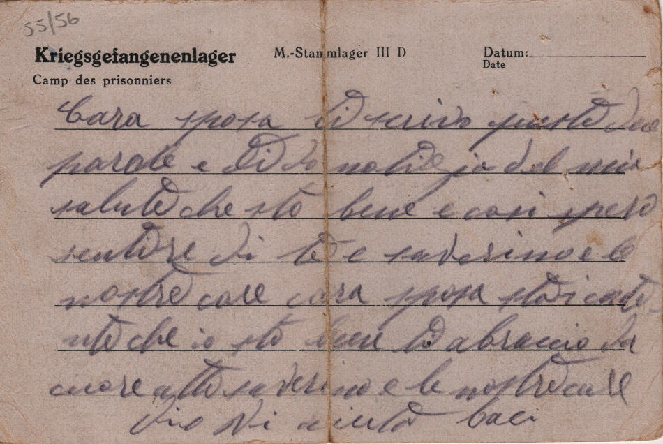 Cartolina scritta nel campo di prigionia e spedita (timbro postale 16.12.43) a Niscemi, provincia di Caltanissetta (Italia)