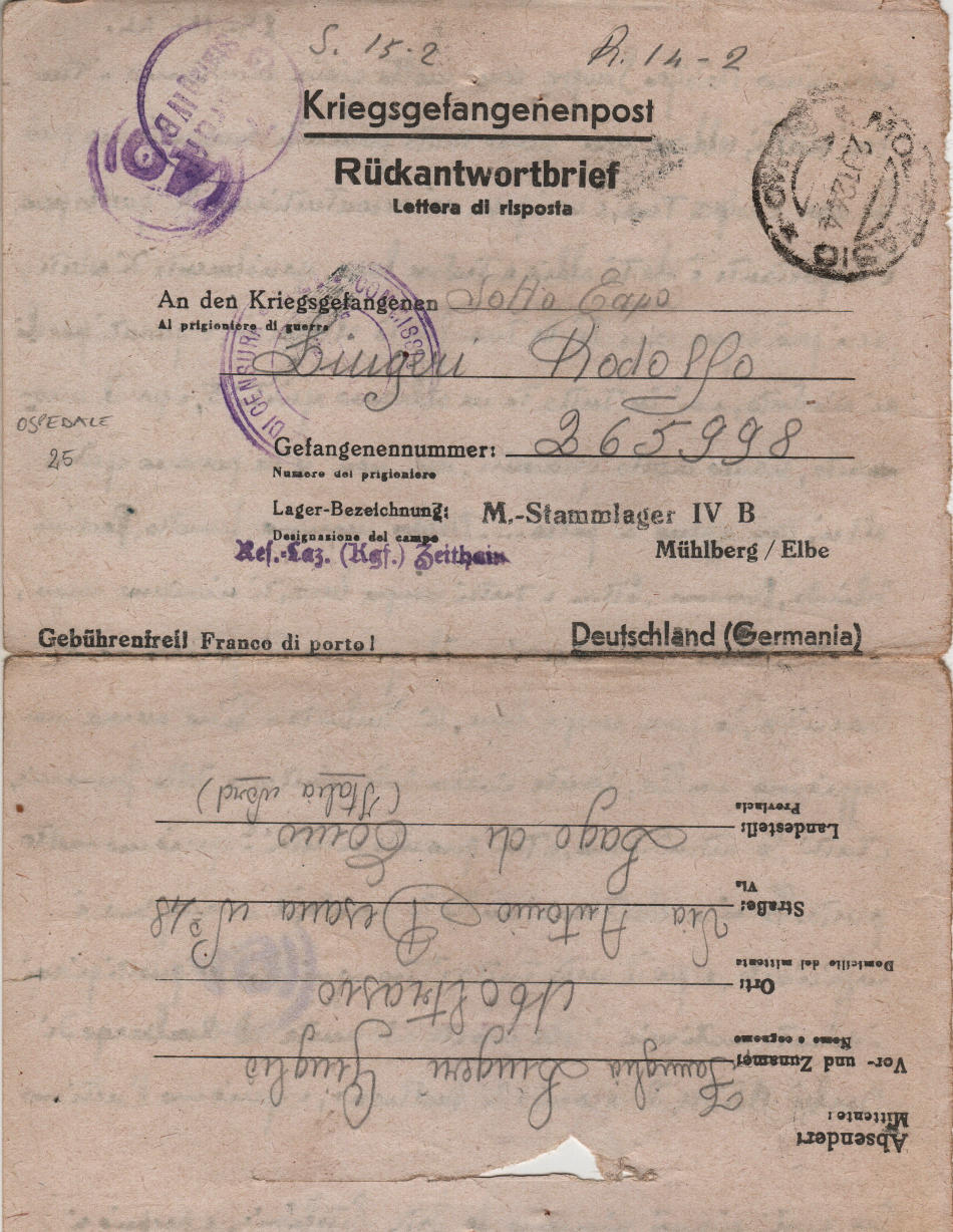 Lettera scritta il 29.12.1944 a Moltrasio, provincia di Como (Italia) e spedita al campo di prigionia