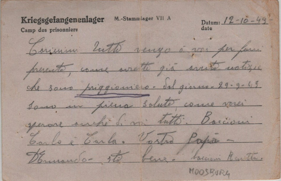Cartolina scritta il 12.10.1943 nel campo di prigionia e inviata a Berra, in provincia di Ferrara (Italia)