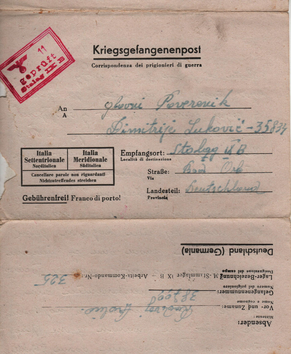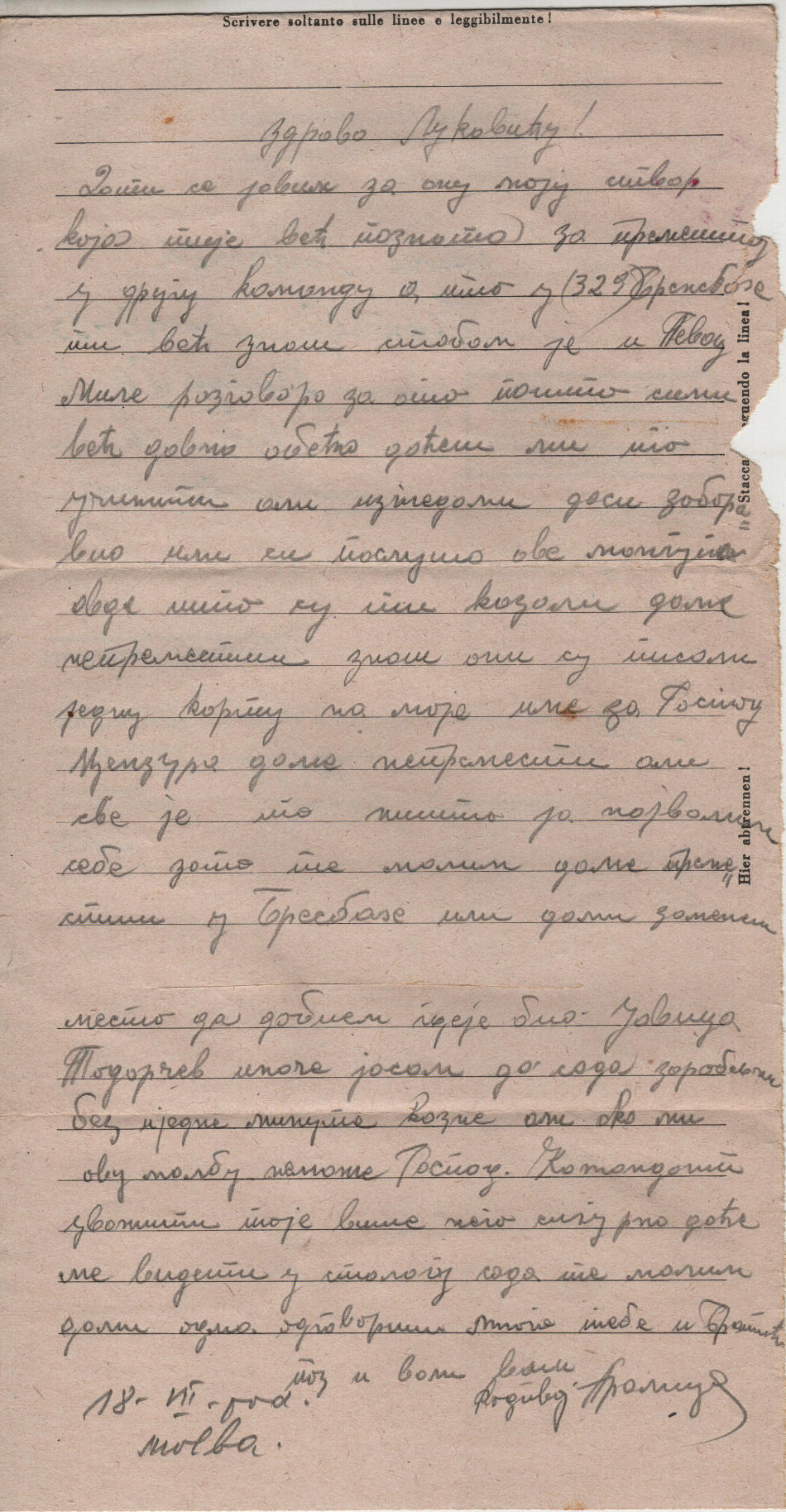 Lettera scritta il 18.7 (anno non leggibile) e spedita interna al campo di prigionia (tra campi di lavoro?)