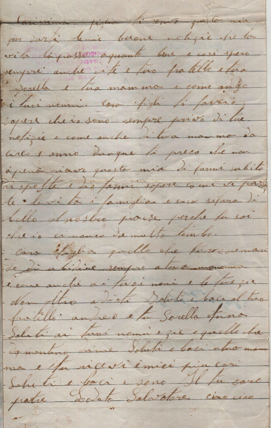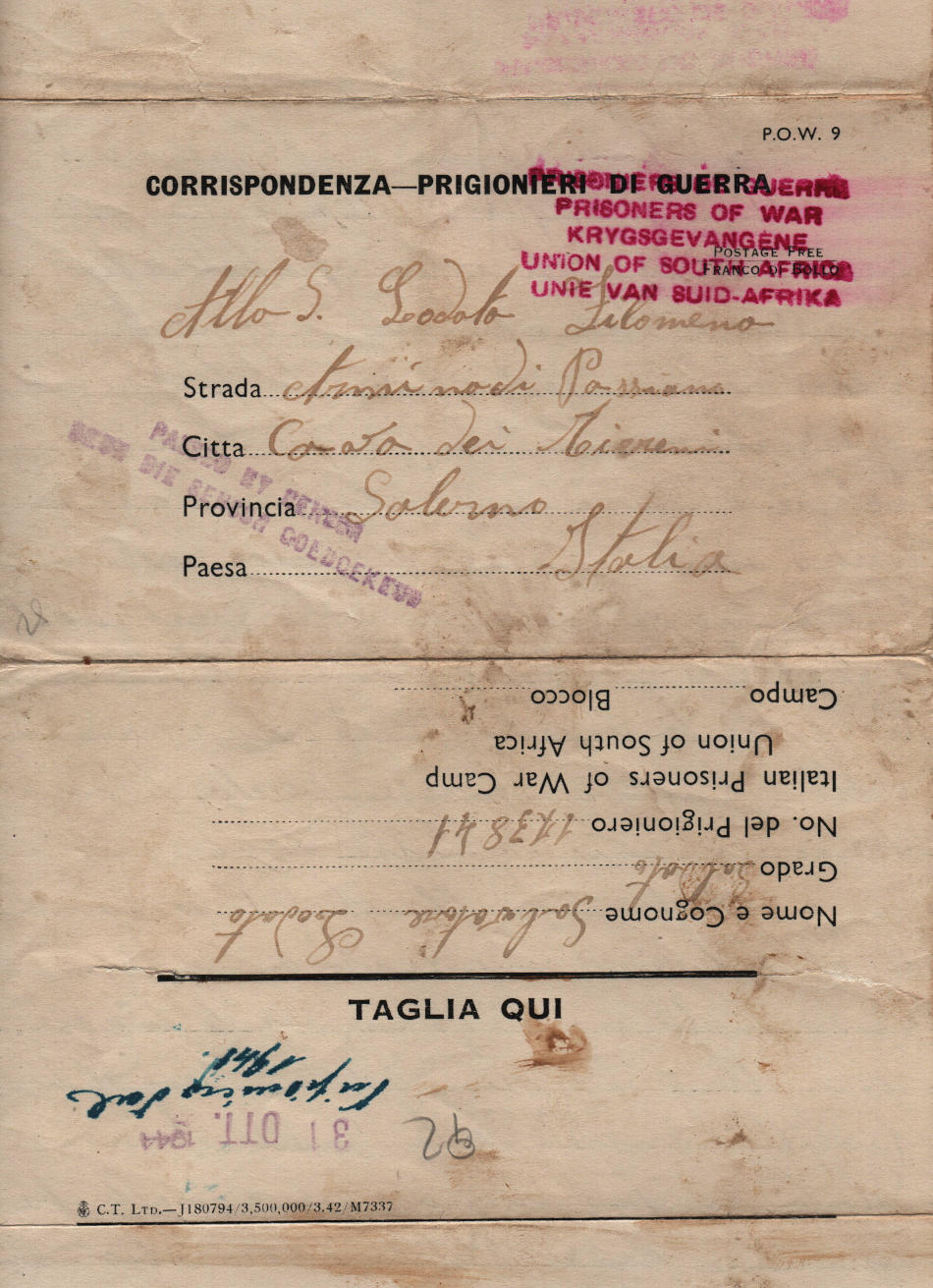Lettera scritta il 27.7.1944 nel campo di prigionia e spedita a Cava de’ Tirreni (provincia di Salerno) in Italia