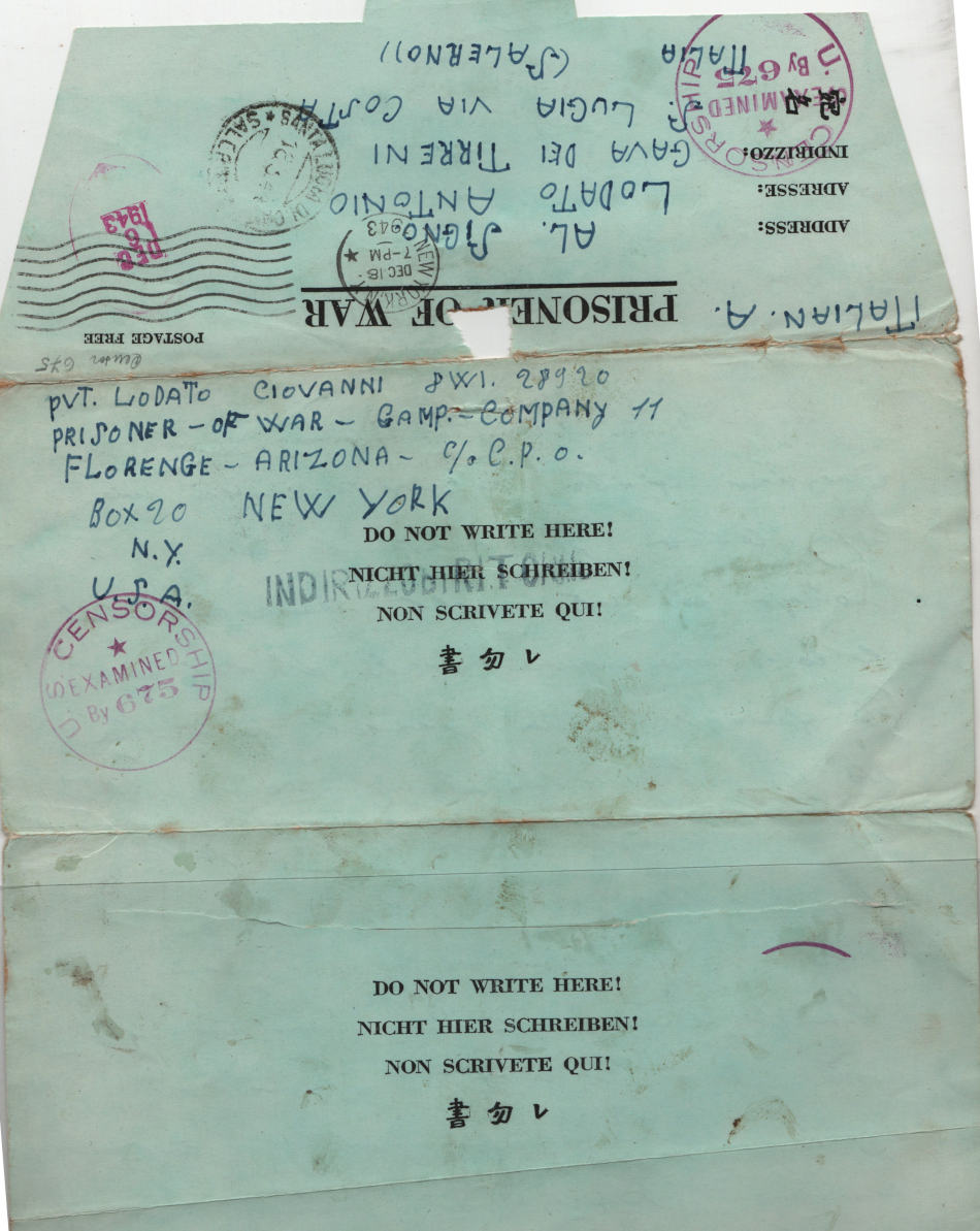 Lettera scritta il 6.12.1943 nel campo di prigionia e spedita a Cava dei Tirreni (provincia di Salerno) in Italia