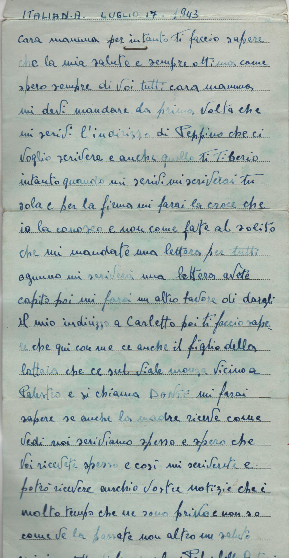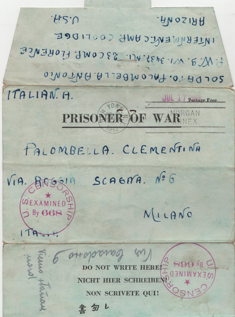 Lettera scritta il 17.7.1943 nel campo di prigionia e spedita a Milano in Italia