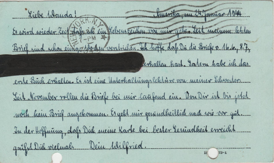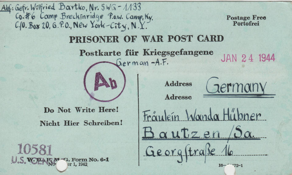 Cartolina scritta il 24.1.1944 nel campo di prigionia e spedita a Bautzen (Sassonia) in Germania