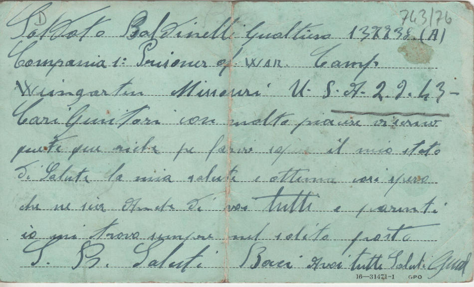 LETTERE DAI CAMPI DI PRIGIONIA DELLA SECONDA GUERRA MONDIALE