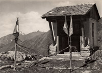 Davanti: Rifugio e Cappellina "Madonnina del Varrone" della Soc. F.A.L.C. - Milano a quota m. 2160 Nello sfondo il Pizzo dei 3 Signori mt. 2554 Retro: nessuna scritta Spedizione: cartolina viaggiata - timbro Gerola Alta - data 11.8.1955 Editore: Foto Pasquè |