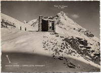 Davanti: RIFUGIO GRASSI m. 2000 e PIZZO TRE SIGNORI m. 2555 Retro: Società Escursionisti Lecchesi – Lecco Piazza XX Settembre Rif. GRASSI m. 2000 Passo Camisolo (Pizzo Tre Signori) Centro sciistico e per ascensioni sci alpine. Da Lecco autopostale per Introbio. Mulattiera in ore 2 a Biandino - ore 1 1/4 al Rif. secondo le condizioni di neve. Indirizzo postale: Custode Rif. Grassi. Introbio. Spedizione: cartolina viaggiata - timbro Introbio - data non leggibile Editore: Ediz. S.E.L. Neg. Sassi Note: timbro RIF. "A. GRASSI" al Passo di Camisolo PIZZO DEI TRE SIGNORI |