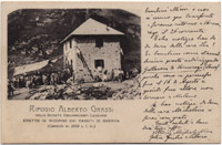 Davanti: Rifugio Alberto Grassi DELLA SOCIETA' ESCURSIONISTI LECCHESI ERETTO IN RICORDO DEI CADUTI DI GUERRA (Camisolo m. 2000 s. l. m.) Retro: nessuna scritta Spedizione: cartolina viaggiata - timbro Introbio - data 24.7.1922 Editore: ESCURSIONISTI LECCHESI EDIT. TIP. G. MAGNI - LECCO |
