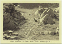 Valle del Bitto di Albaredo: uscendo dall'abetaia in località Orta, a 1700 metri, e proseguendo fino al passo, il fondo stradale della via Priula è ancora in buone condizioni e sembra di camminare nella montagna di 400 anni fa.