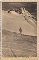 S'inizia la discesa; scivoliamo giù per un ripido caminetto pieno di neve e, volto uno sguardo d'addio alle Alpi scintillanti al sole di mezzodì, ci tuffiamo nella nebbia. - Sono sparite come per in canto le risate gioconde, continuiamo seguendo la cresta fino a Camisolo, scendiamo nella conca di Biandino passando pel rifugio Pio X, indi ad Introbbio.