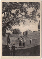 Da un quaderno di scuola, data 25-5-1930, ecco il tema “Una passeggiata in montagna”: Domenica scorsa andai a fare una piccola passeggiata in montagna ed osservai un po' le piante tutte ricoperte di foglie le quali tremolavano al minimo soffio di vento e il fieno che era già alticello anch'esso si piegava come le onde di un mare. Poi diedi uno sguardo dall'alto alla pianura e vidi i contadini dei quali alcuni falciavano il fieno, alcuni lo sparpagliavano e alcuni lo caricavano sul carro quello già secco falciato pochi giorni innanzi e lo trasportavano alle case ove lo scaricavano e lo comprimevano e via a prenderne un'altro carro e così di seguito fino alla sera. Oh, come è bello trascorrere la vita in quel modo all'aria libera e al sole cantando e lavorando! Proseguii il mio piccolo viaggio e andai dove mi guidava la mente e giunsi in un piccolo altipiano dove c'erano dei bellissimi pini e alti che, con i loro rami s'intrecciavano oscuravano il terreno. Si sentiva un odore (per meglio dire un profumo) di ragia che emanavano questi, e l'aria sembrava più pura e più ristoratrice. In un fianco di questo altipiano c'era una piccola casetta disabitata perché vengono soltanto in estate a fare la stagione con le mucche e questa dava un aspetto molto artistico. Continuai il cammino e giunsi in un bosco fitto e grande nel quale c'erano varie specie di piante alte e folte di foglie le quali ombreggiavano il suolo e c'era molto fresco e ci si poteva ristorar bene. Siccome la sera sopraggiungeva lesta ritornai a casa e di quando in quando mi fermavo a guardare qualcosa che prima non avevo visto non badandoci tanto; giunsi con molto appetito contento e senza un poco di stanchezza.